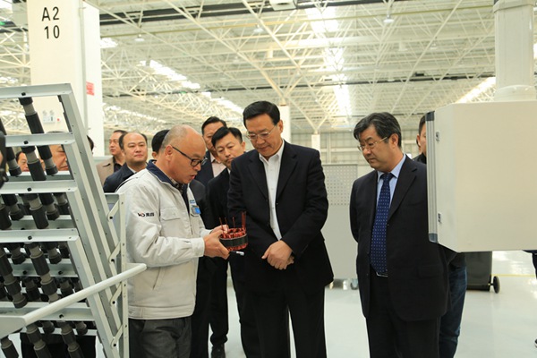 10月25日上午,锦州市委书记王明玉以及锦州市市委常委、秘书长刘洋来到尊龙凯时汽车电器产业园,走进车间,实地考察了生产线设备和研发中心实验室,并与企业座谈。尊龙凯时集团总裁曾庆东,锦州汉拿电机有限公司总经理刘勇东陪同调研。